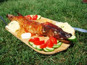 Pensiunea “CASA DINTRE SALCII” din Uzlina, Tulcea, pregateste o stiuca umpluta de te lingi pe degete.